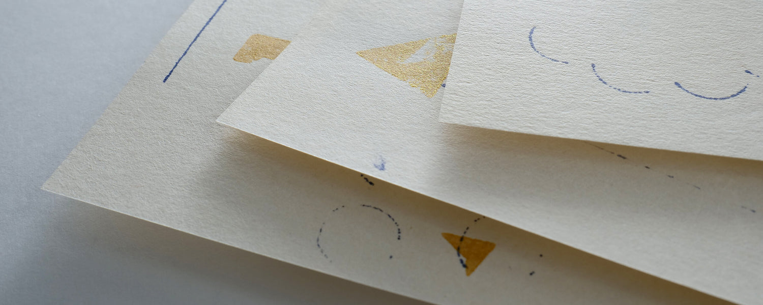 オリジナルの判で手押しした、抽象的な絵柄が特徴的。