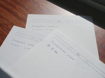 Enjoy classic ribbed Conqueror Laid or hammer-embossed Conqueror Contour, from the British makers of high-end correspondence paper with over a century of history. Feel the tactility of Shinkyokushi paper, a modern reproduction of washi (Japanese paper) designed for everyday use. Find the perfect finish from our carefully selected range.