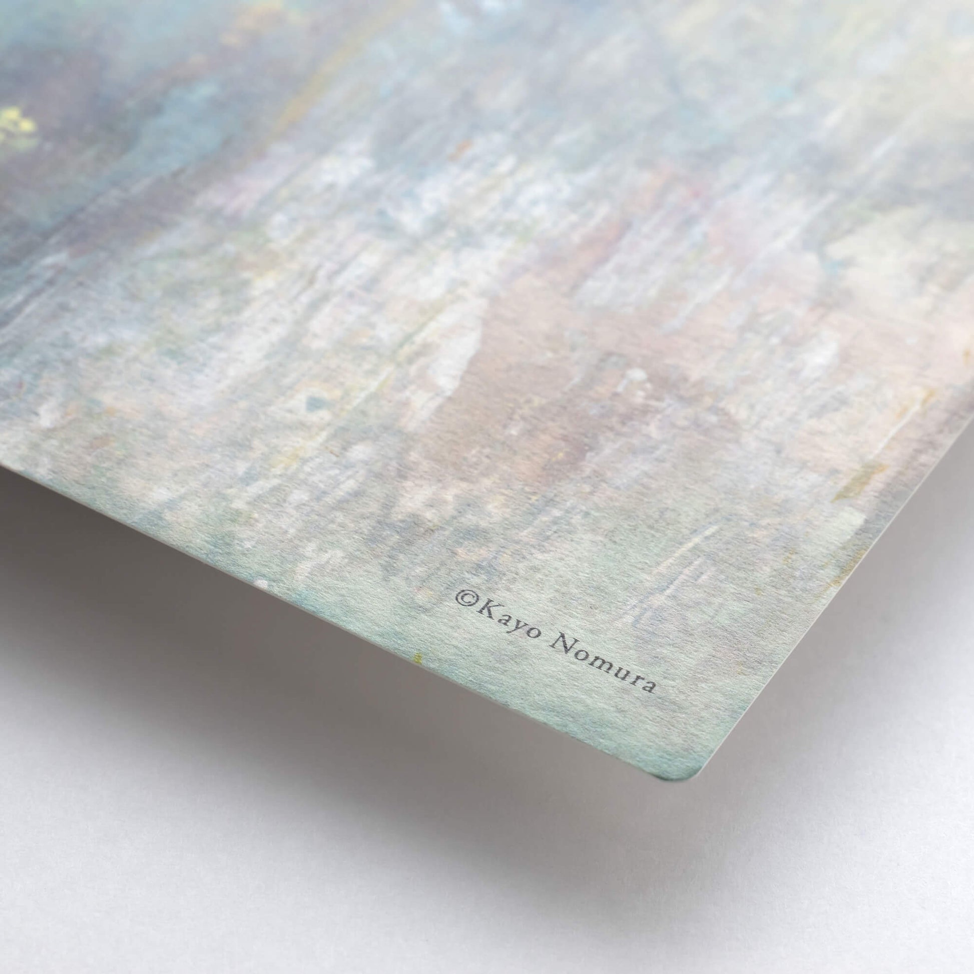Nomura creates her work using a variety of materials, including acrylic and watercolour paints. Sound of life captures the first green shoots emerging among fallen leaves and soil as the long winter ends, signalling the coming of spring.