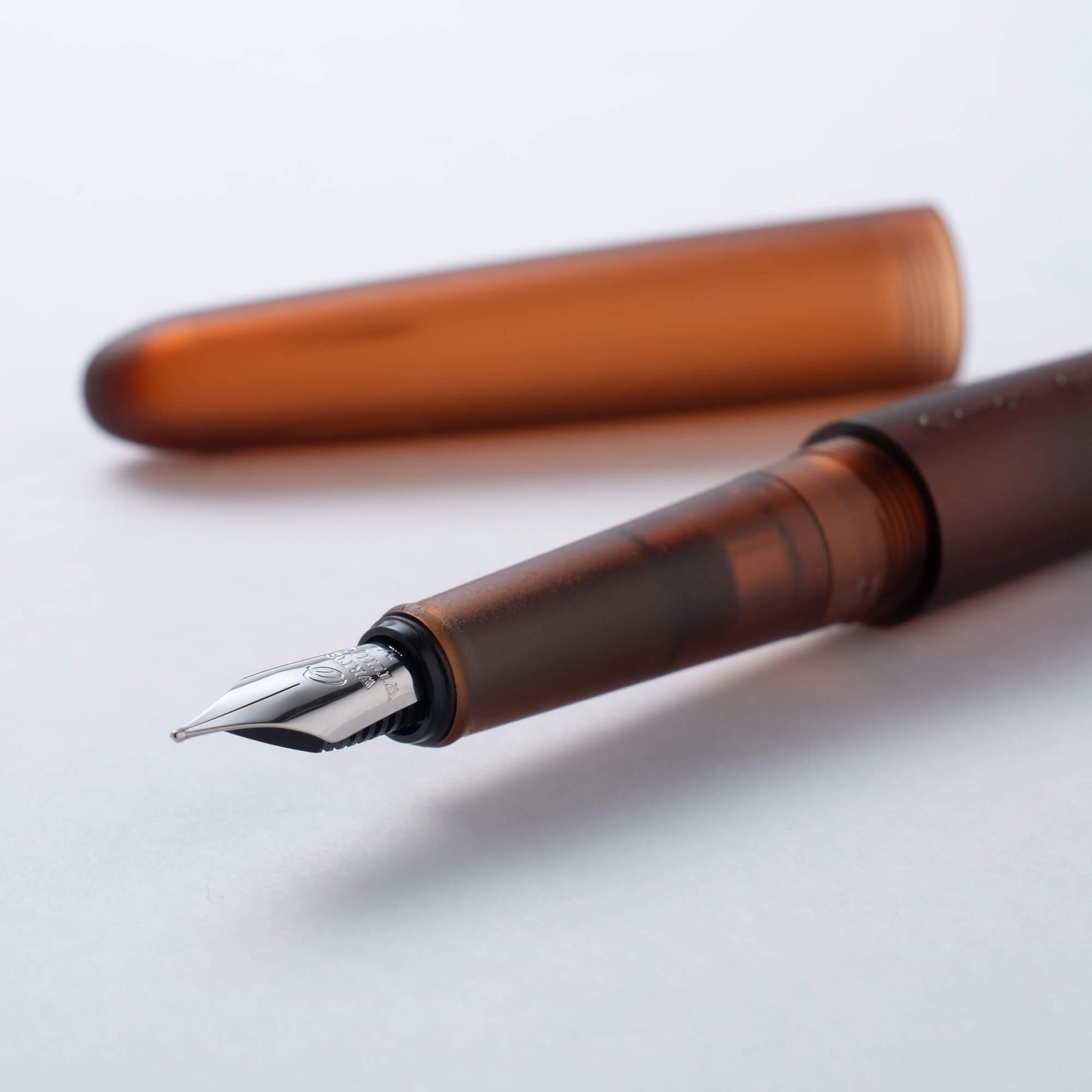 The Frost pen series was created for the enjoyment of all ink writers, whether experienced or just starting out. Its semi-opaque design reveals the ink colour and nib shape, showcasing them as unique design elements.