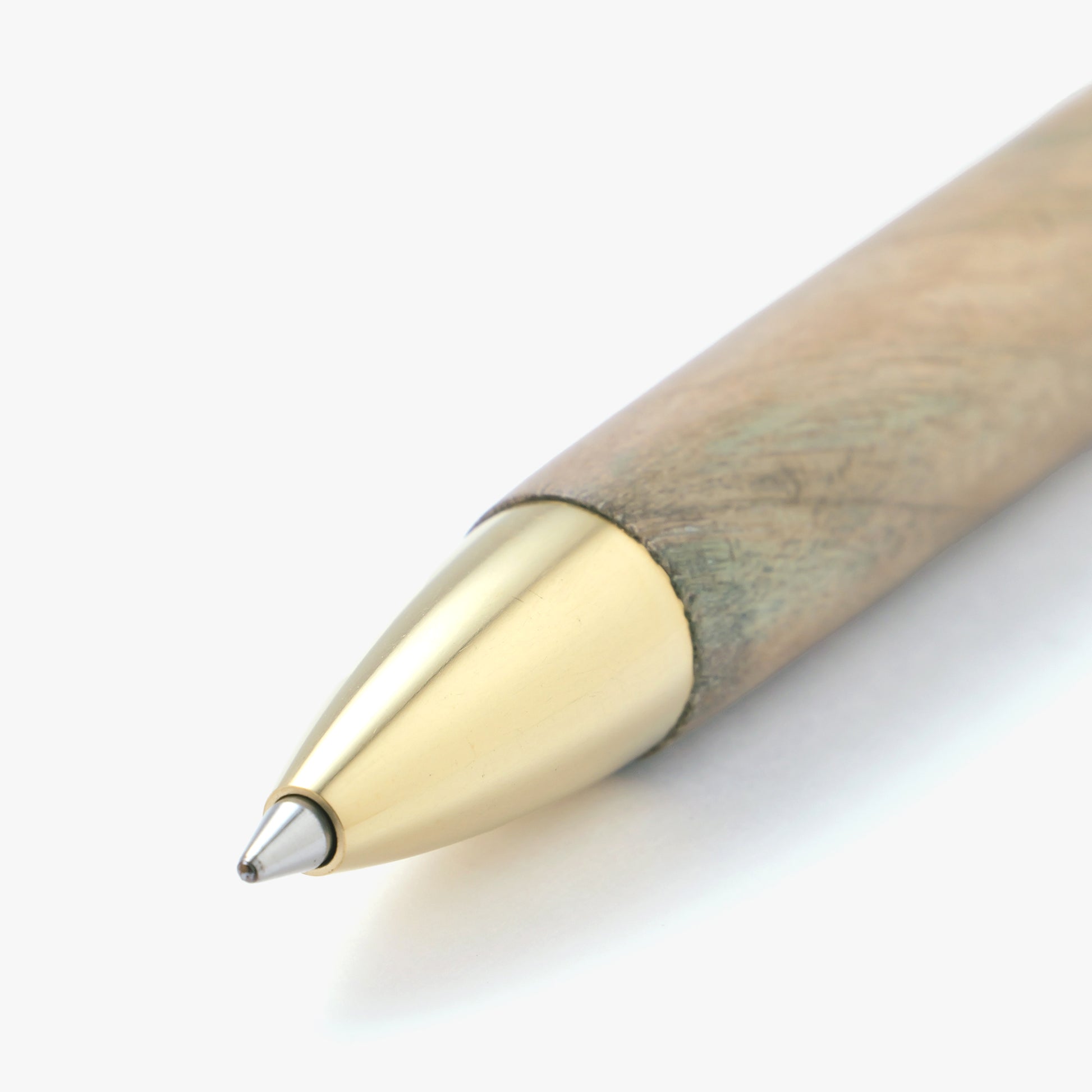 The custom-designed push button and tip are crafted from brass. The raw brass finish will naturally develop a patina over time, creating a pen that evolves uniquely with you.