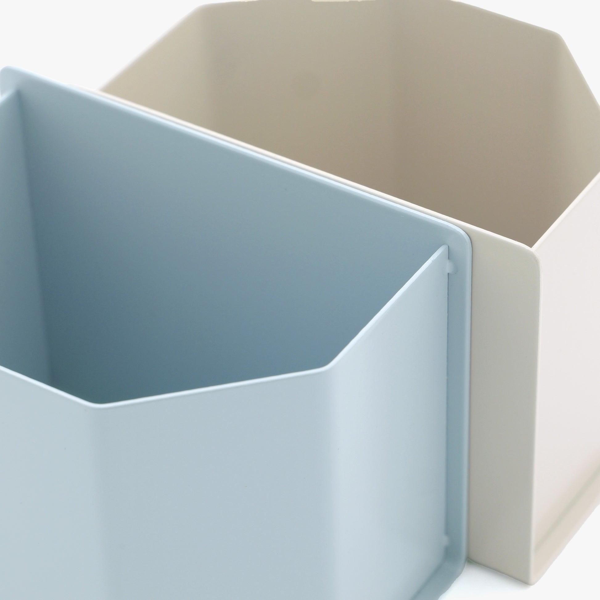 A container for small items, formed from two folded sheets of metal. Use it on its own or combine a few to hold all the small essentials and help keep your desk beautifully organised.