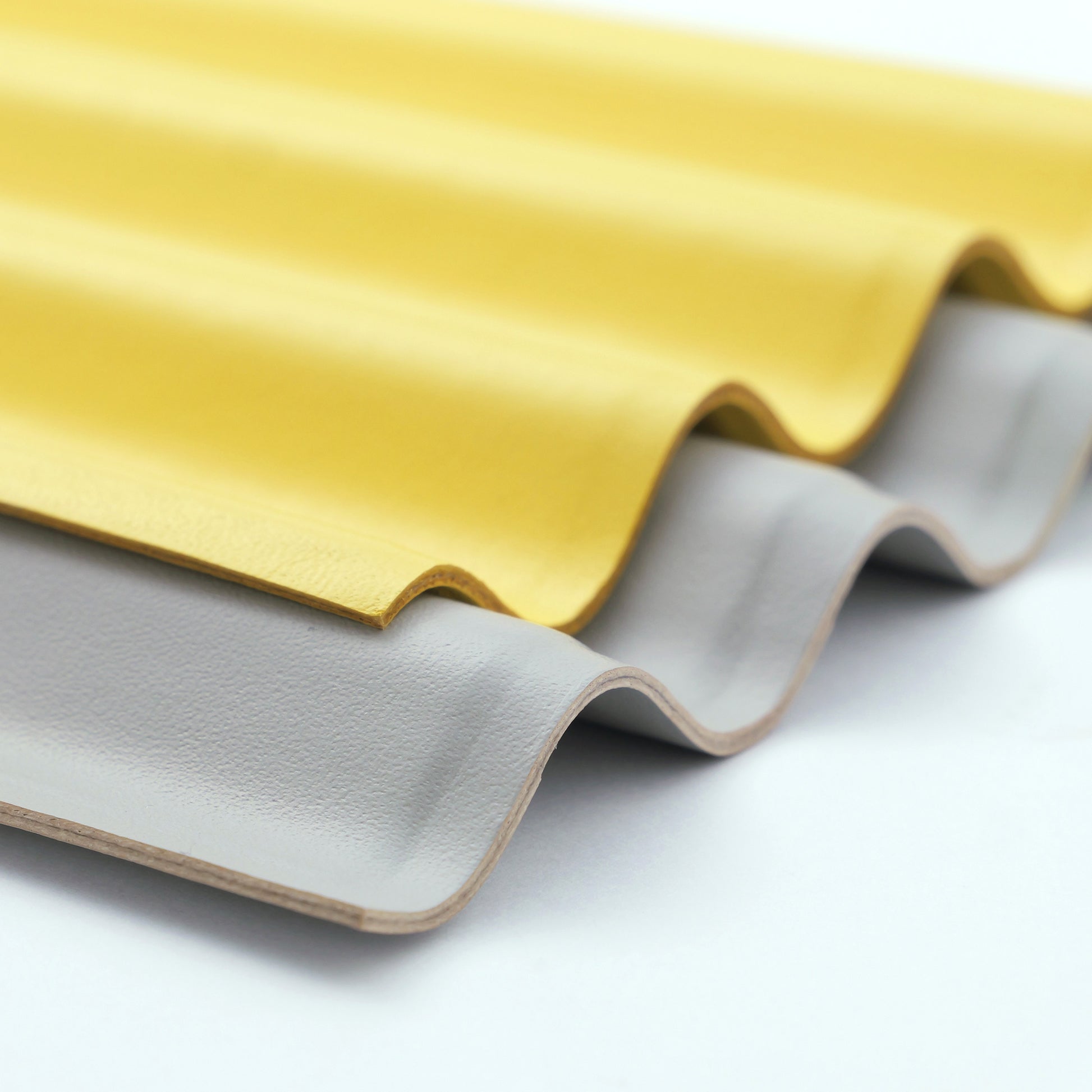 The wavy form lets you arrange small items and pens however you like. Soft leather offers a tactile pleasure. Available in a refined grey and vibrant yellow, pairing beautifully side by side.
