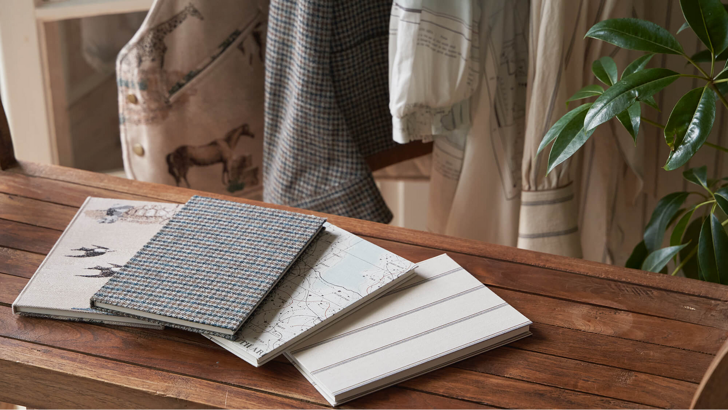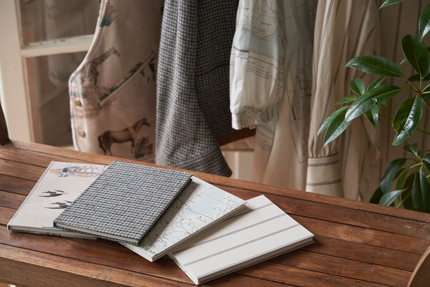 いつでもそばに置いておきたくなるノート。丁寧な製本と質の良い表紙で仕立てられたハードカバーのノートは、本棚の一部になったり、コーディネートの一部になったり。アパレルブランドやテキスタイルメーカーと作る、使い心地の良く、ふとページを埋めたくなるようなノートシリーズです。