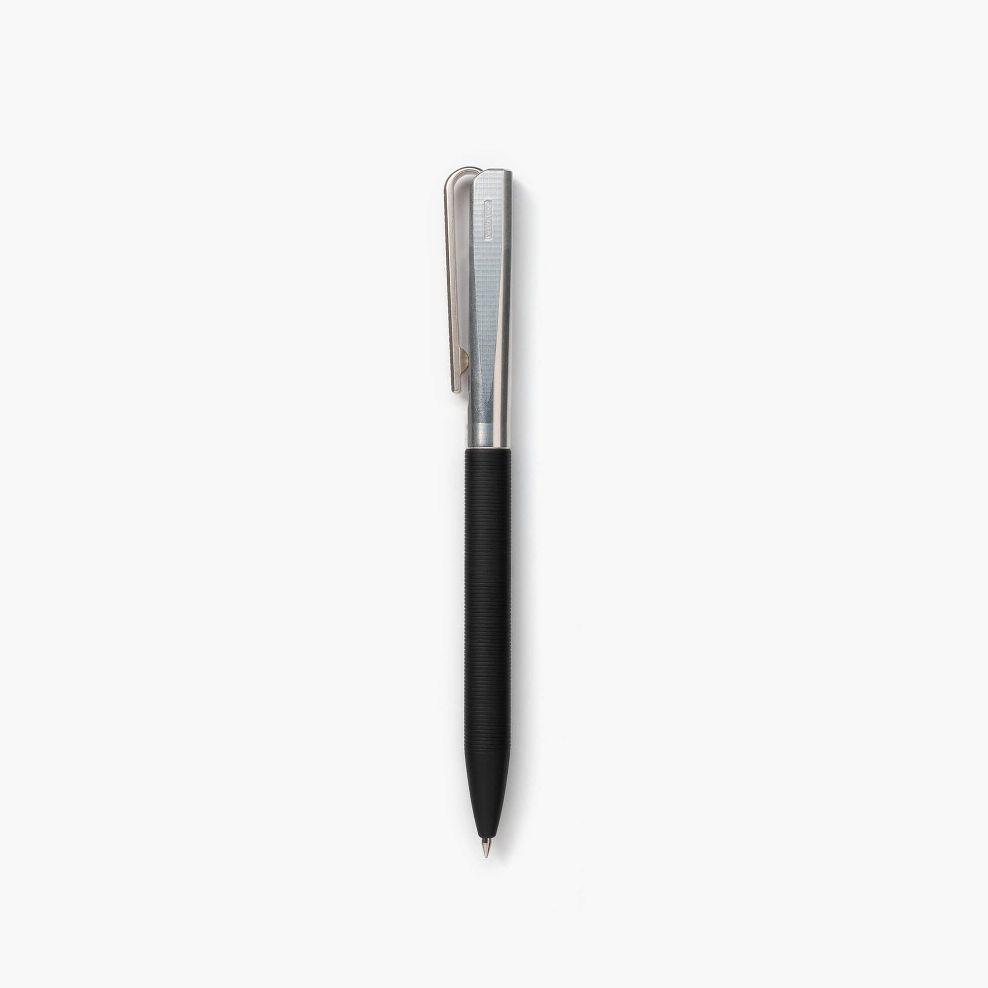 無垢の金属から一つ一つ手作業で削り出されたボールペン。ボディの滑り止めには、プラスチックやゴムの代わりに細い線が刻まれています。こだわりのクリップは珍しいU字型。胸元のポケットに刺したときには、ペンの形が隠れて洋服との相性が良いのもポイント。随所に日本の職人技が活かされています。
