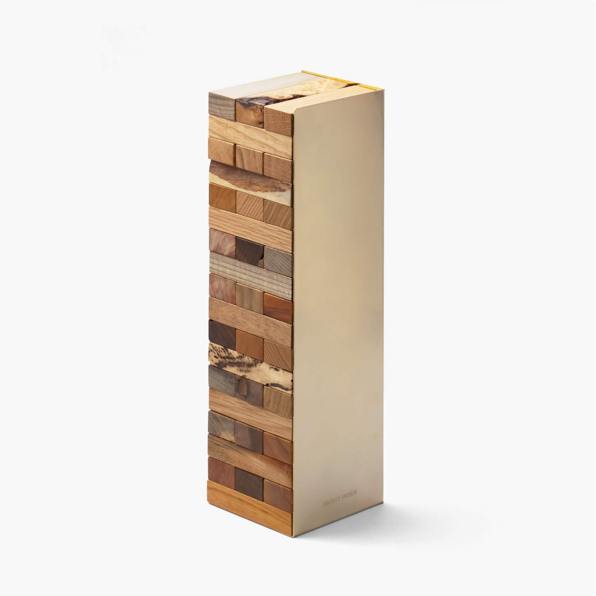 「Est.2025」は、樹皮をあえて残したものや、比重が異なる様々な木種が組み合わせてつくられています。通常のタワーゲームに、自然なアンバランス感が加わることでひと味違う新鮮な感覚を味わえます。一つ一つピースを引き抜く度に、その美しさに魅了されるアイテムです。全てエディションナンバー付きの限定生産。使用していない時に美しくディスプレイできる真鍮製のガイドが付属しています。