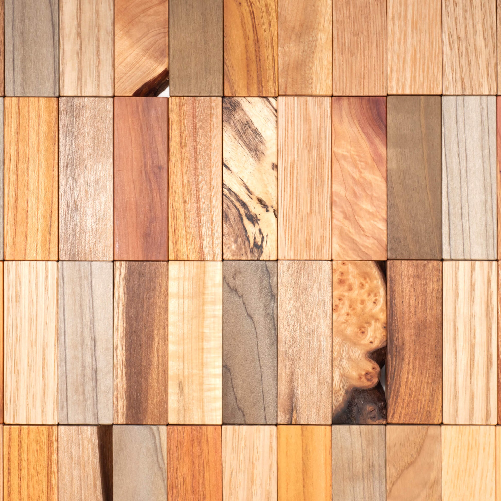 | 素材 | 本体:エンジュ、ホオ、ナラ、カシ、ケヤキ、クス、カイヅカイブキ、ソメイヨシノ、クリ、クルミ、エノキ、ヒノキ 等(Est.2025)/ ソメイヨシノ(Somei Yoshino, Sumida Park) ガイド:真鍮 |