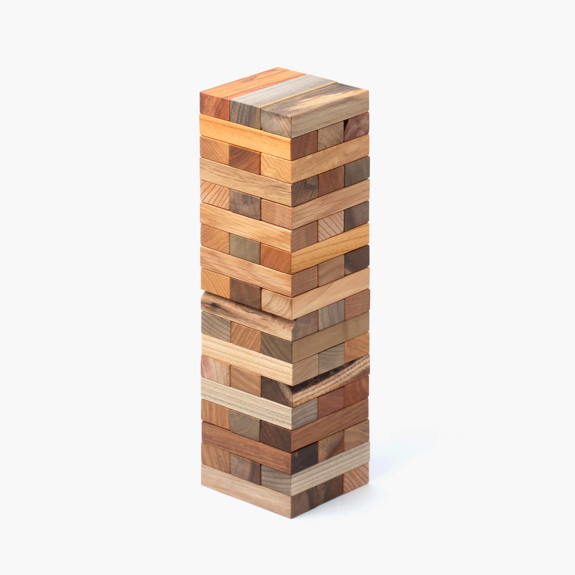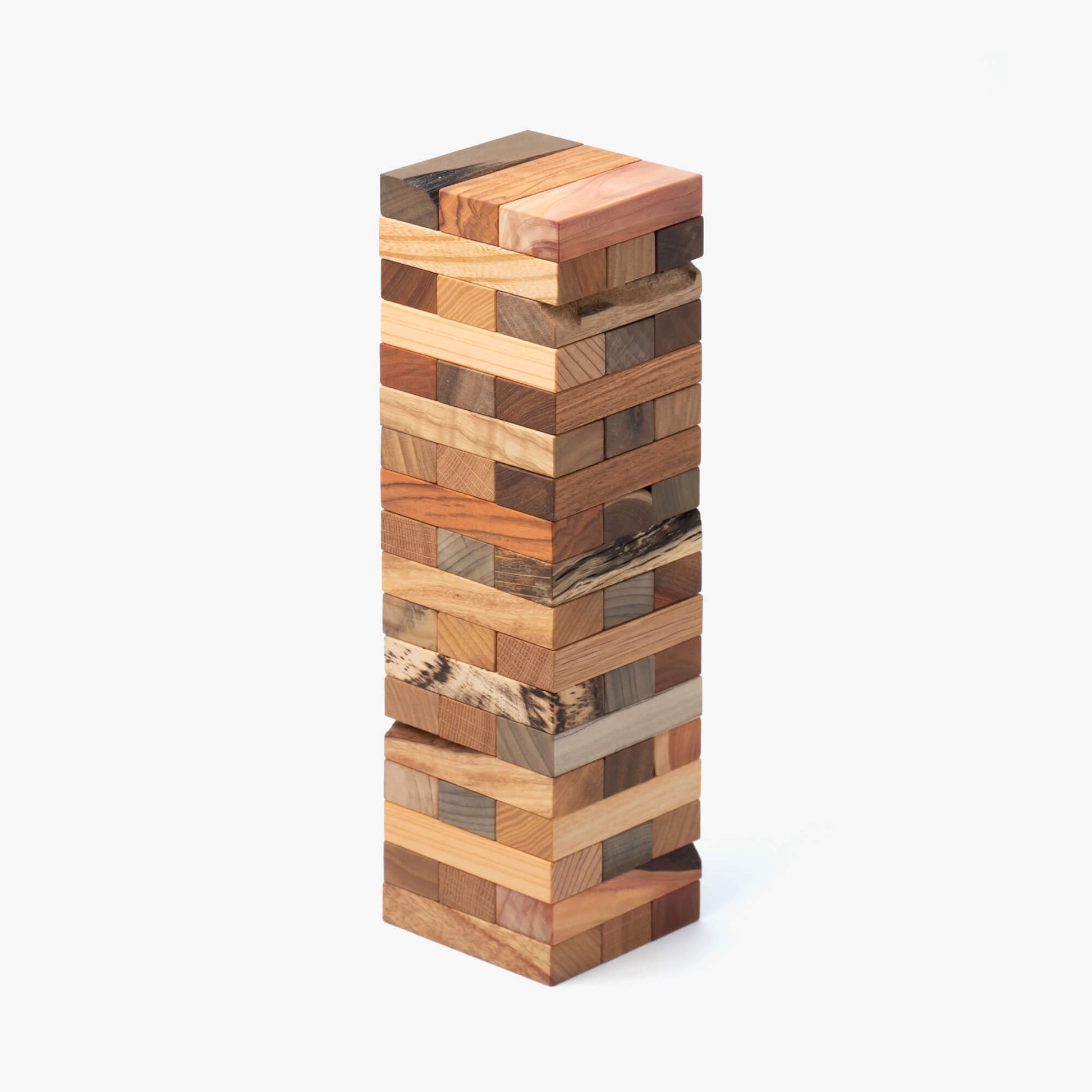 木の性質とひとつずつ丁寧に向き合い、ユニークな作品を生み出している「studio fujino」に製作を依頼した定番のタワーゲーム。国産材の端材を有効活用しながら「遊べるアートピース」として、オフィスやリビングに置きたい美しい佇まいに仕上がりました。