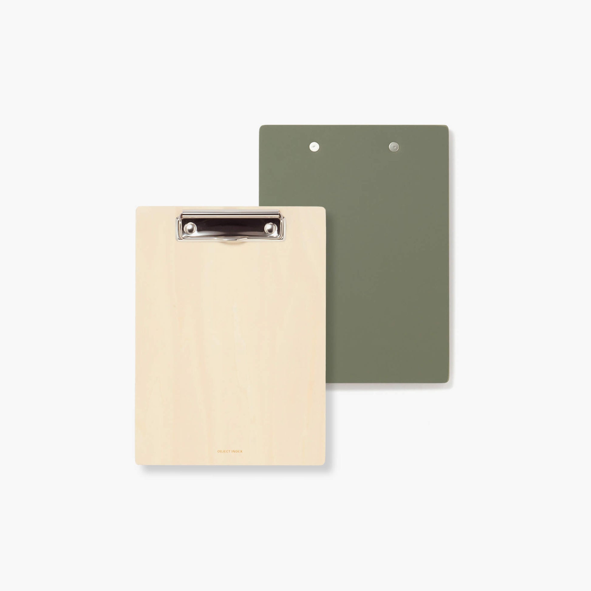 床材として知られるリノリウムとシナ材を二層にした重厚感のあるクリップボード。質感と見た目をどちらも楽しめるよう、表面に貼ったものと裏面に貼った2種類のラインナップ。Front シリーズはリノリウムを下敷きとして、Back シリーズは見せる面として、好みに合わせて選べます。リノリウム貼りからシナ材の切り出し、クリップづけまで、すべて日本の木工所で丁寧につくられています。