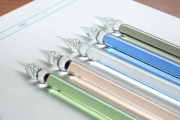 ガラスでつくられたペンって、ちょっと不思議な感じがしませんか?私がこのペンを初めて知ったのは5年以上前になりますが、書く前は「スムーズに使えるのかな?」と思っていました。ですが氷の上を滑るような書き心地と、しゃらしゃらしゃら・・・とガラスと紙がふれあう小さな音が聞こえてくるのが、いい意味で衝撃だったことを今でも覚えています。一回も喋ったことがない顔見知りが、実は気が合う人だった、みたいな。やさしく扱う必要はありますが、割れちゃっても修理可能。感覚的に好きになるアイテムだと思うので、ぜひ実物にふれてみてください。蔵前のお店で試筆もできます!