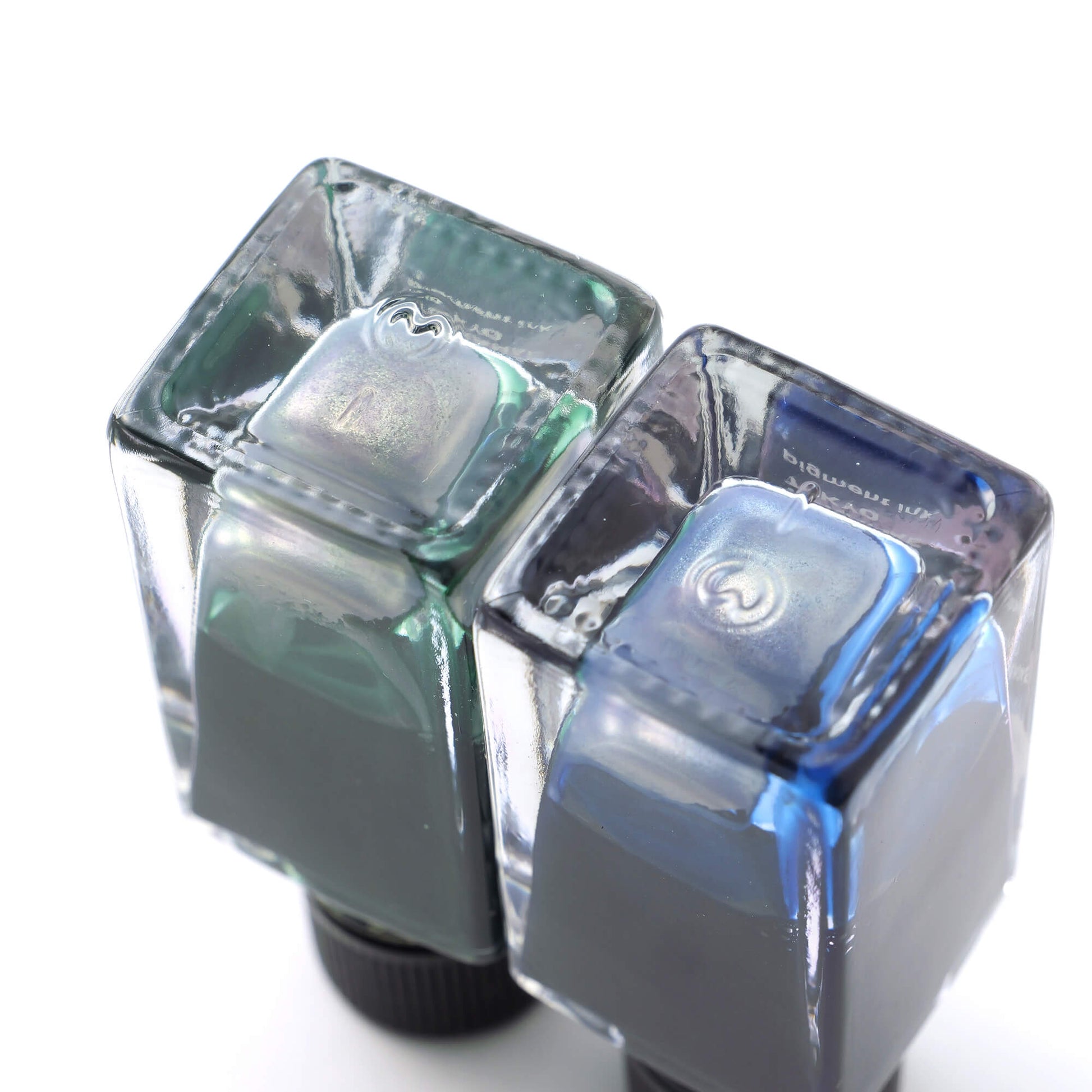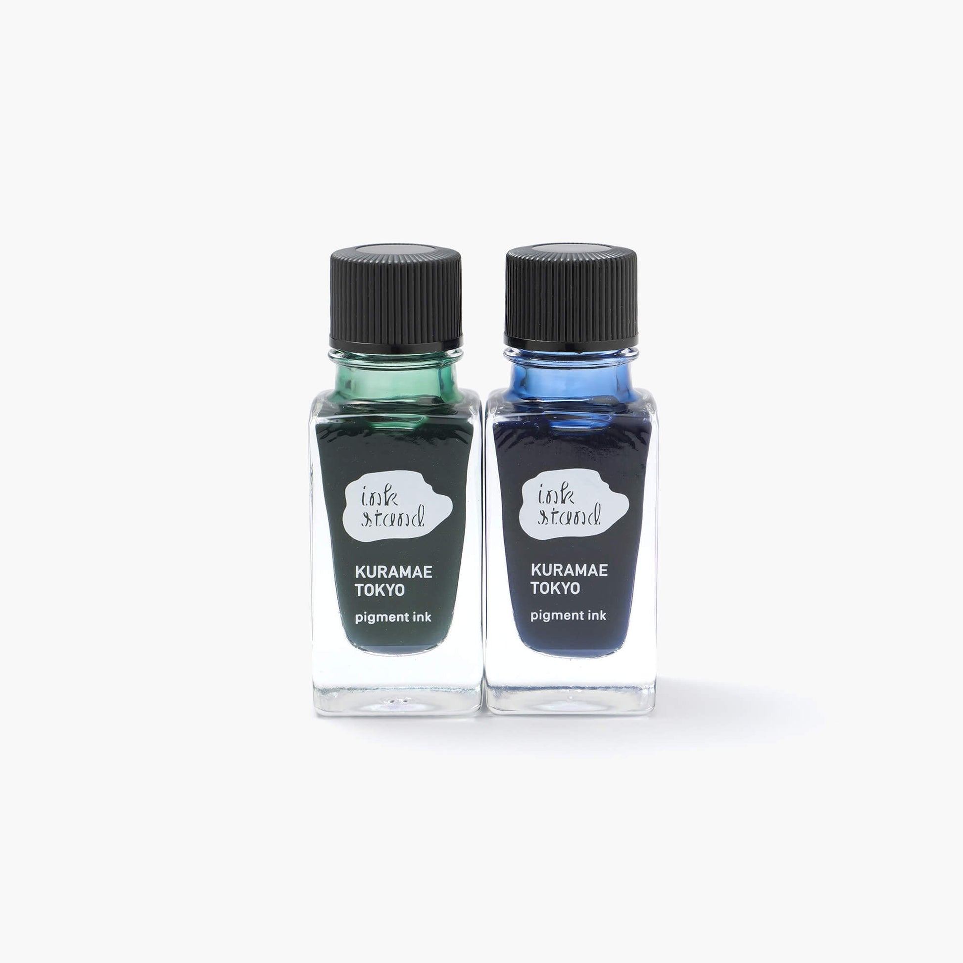 今回は、「パール」を加えた深い青や緑からスタッフが2色選びました。通常より小さなサイズは、はじめてインクを使ってみたい方や、ちょっとしたギフトにもぴったりです。