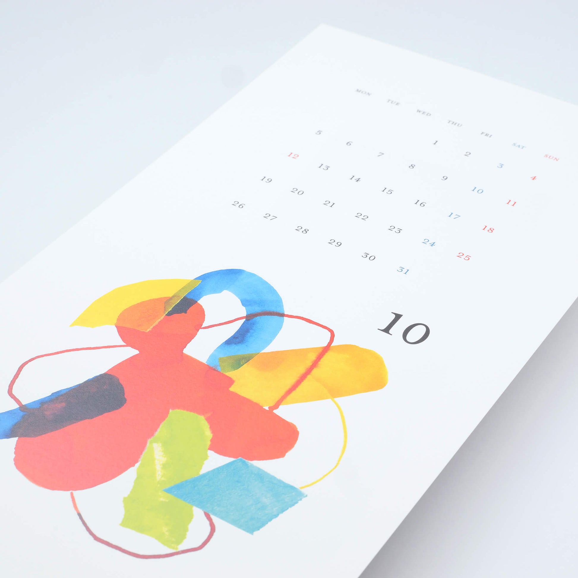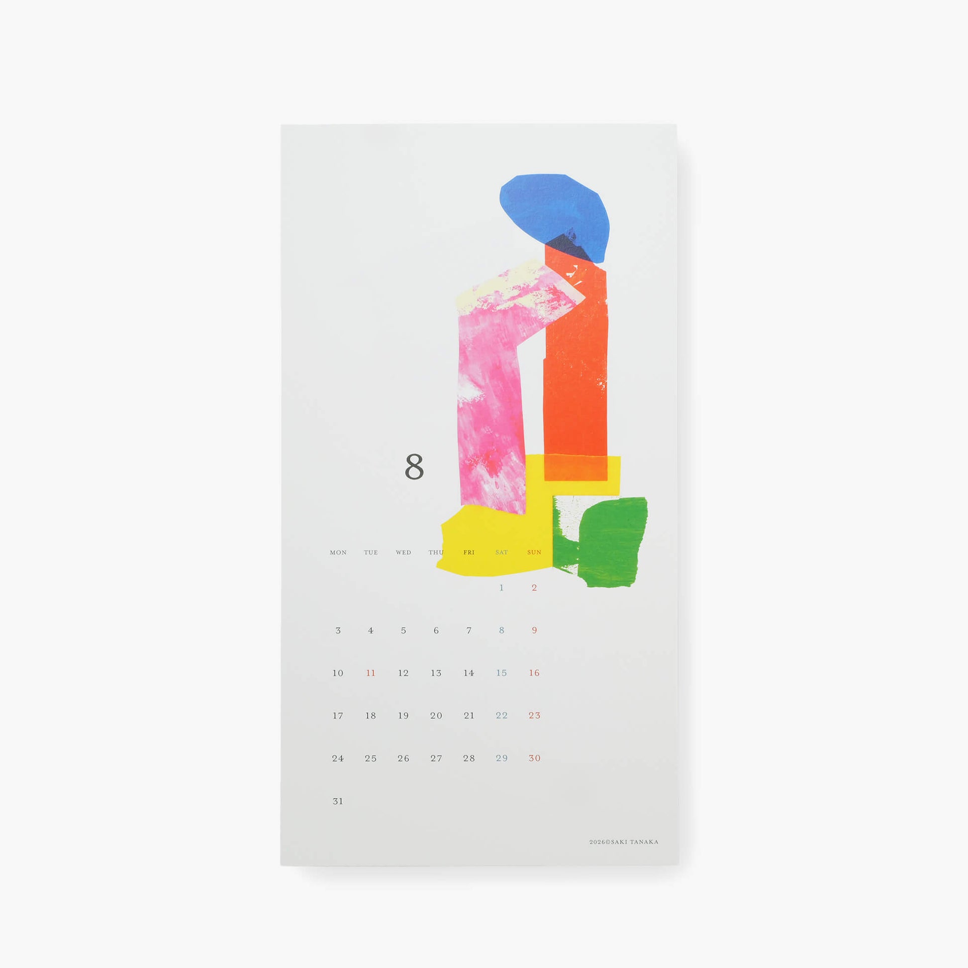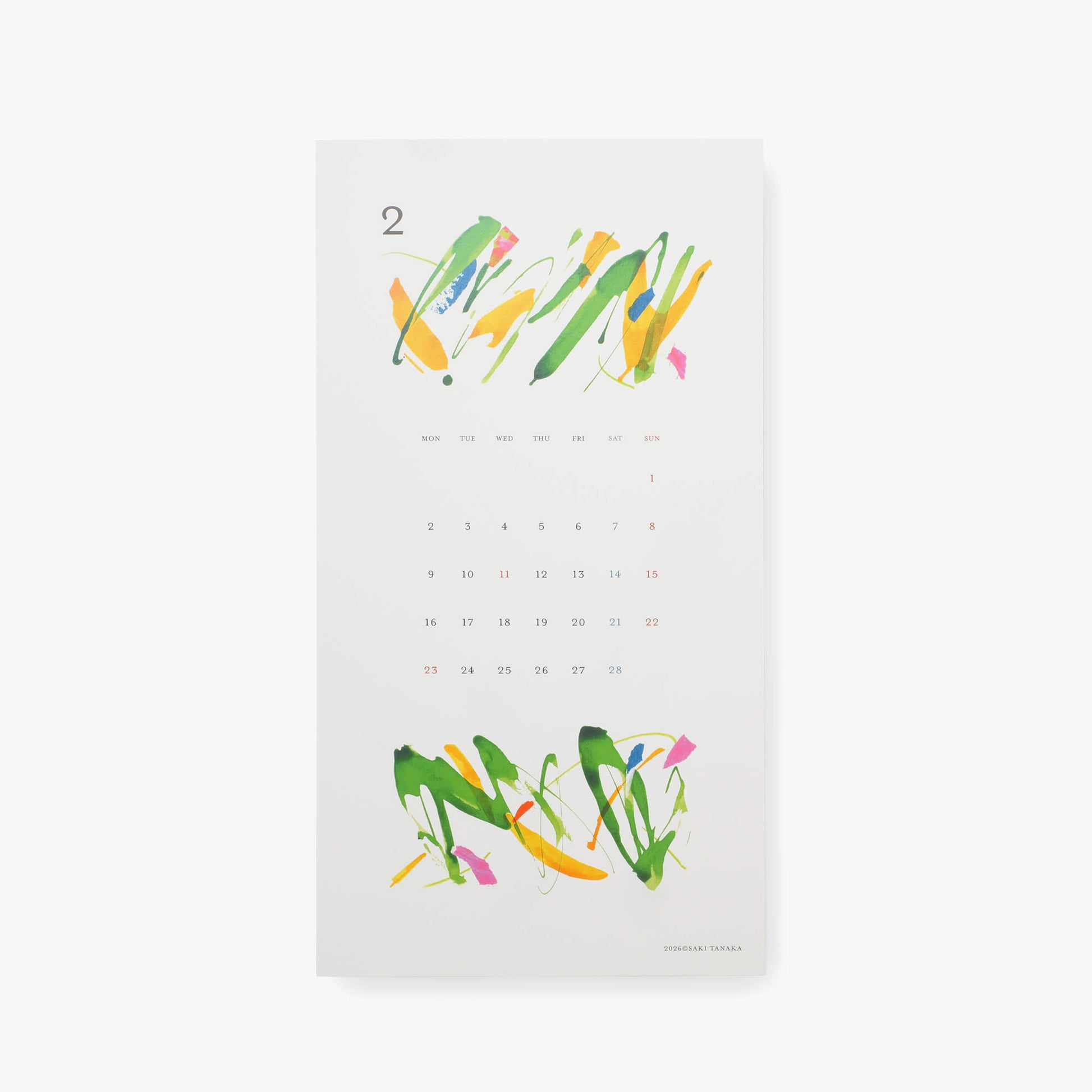 アーティスト・田中紗樹の12枚入りカレンダー。1ヶ月ごとに額に入れ替えたり12ヶ月分を壁に貼り付けたり、好きなように飾ることができます。自由な色遣いの絵と、余白を活かしたデザインが、空間を明るくしてくれます。
