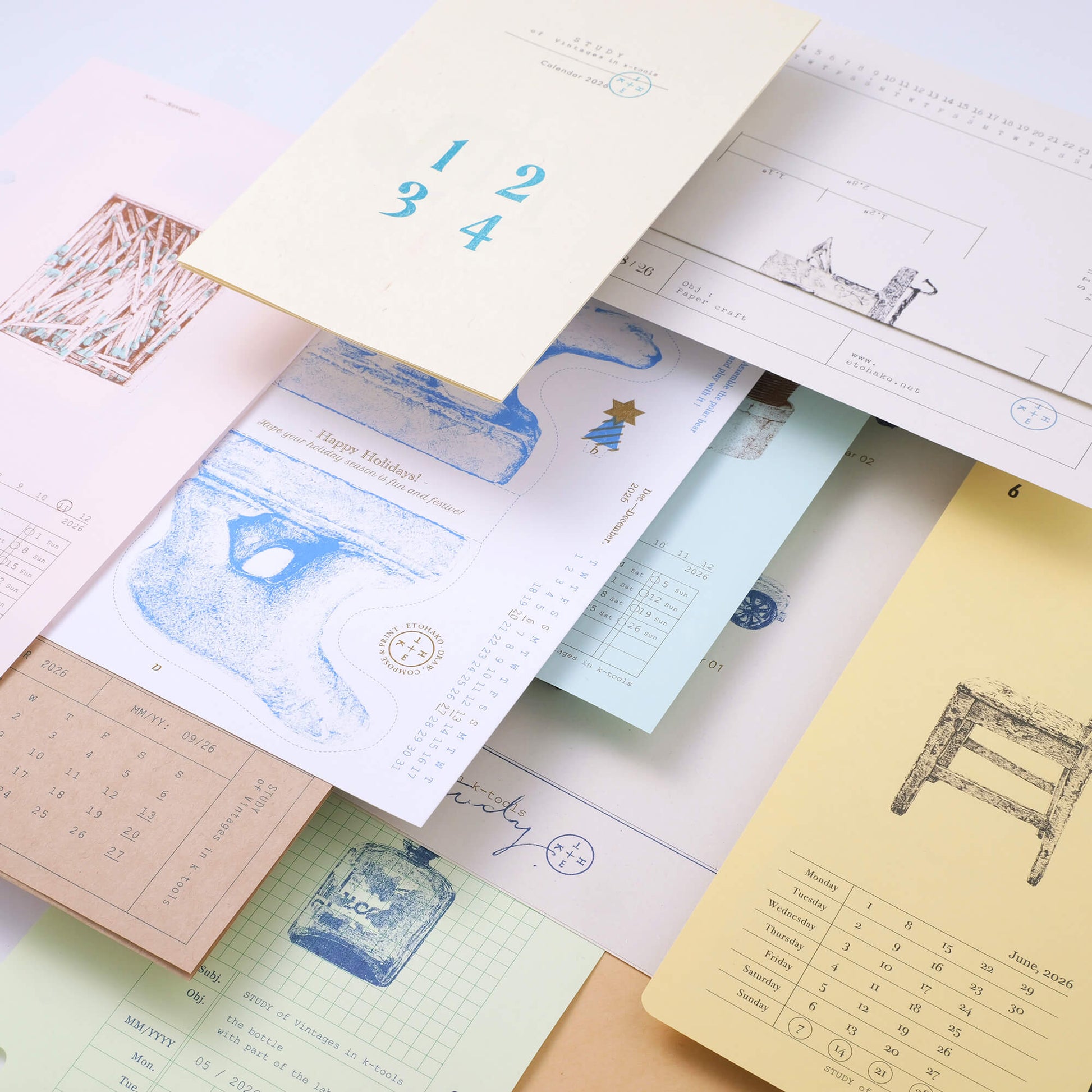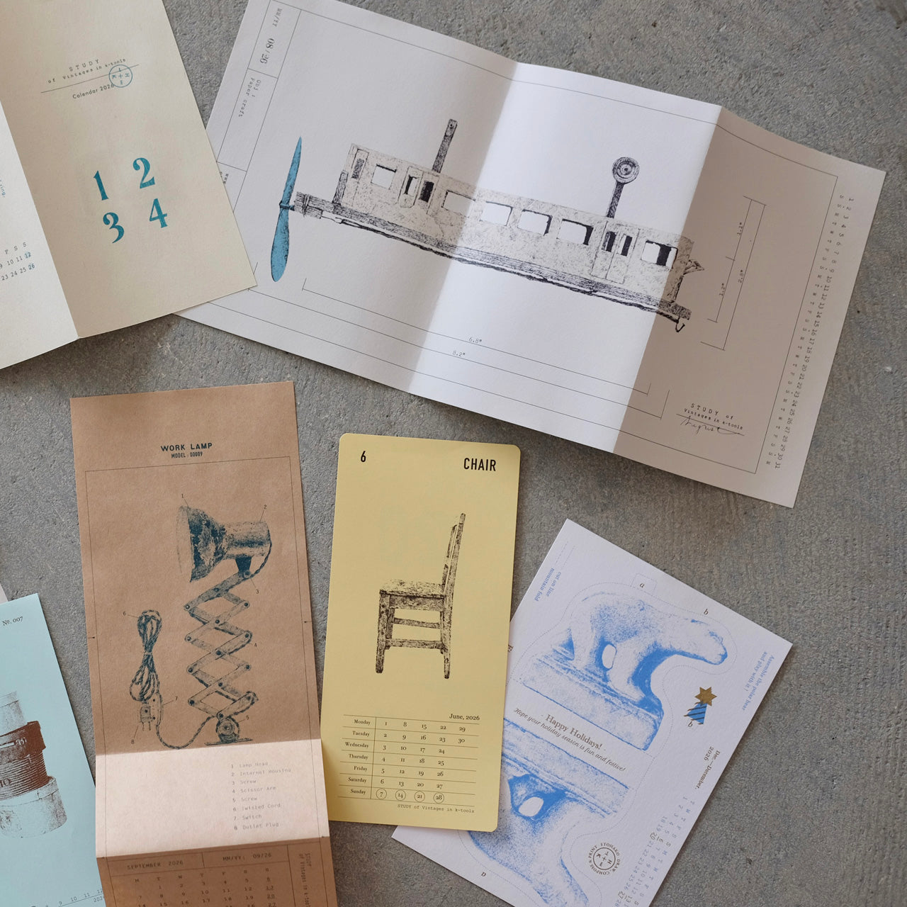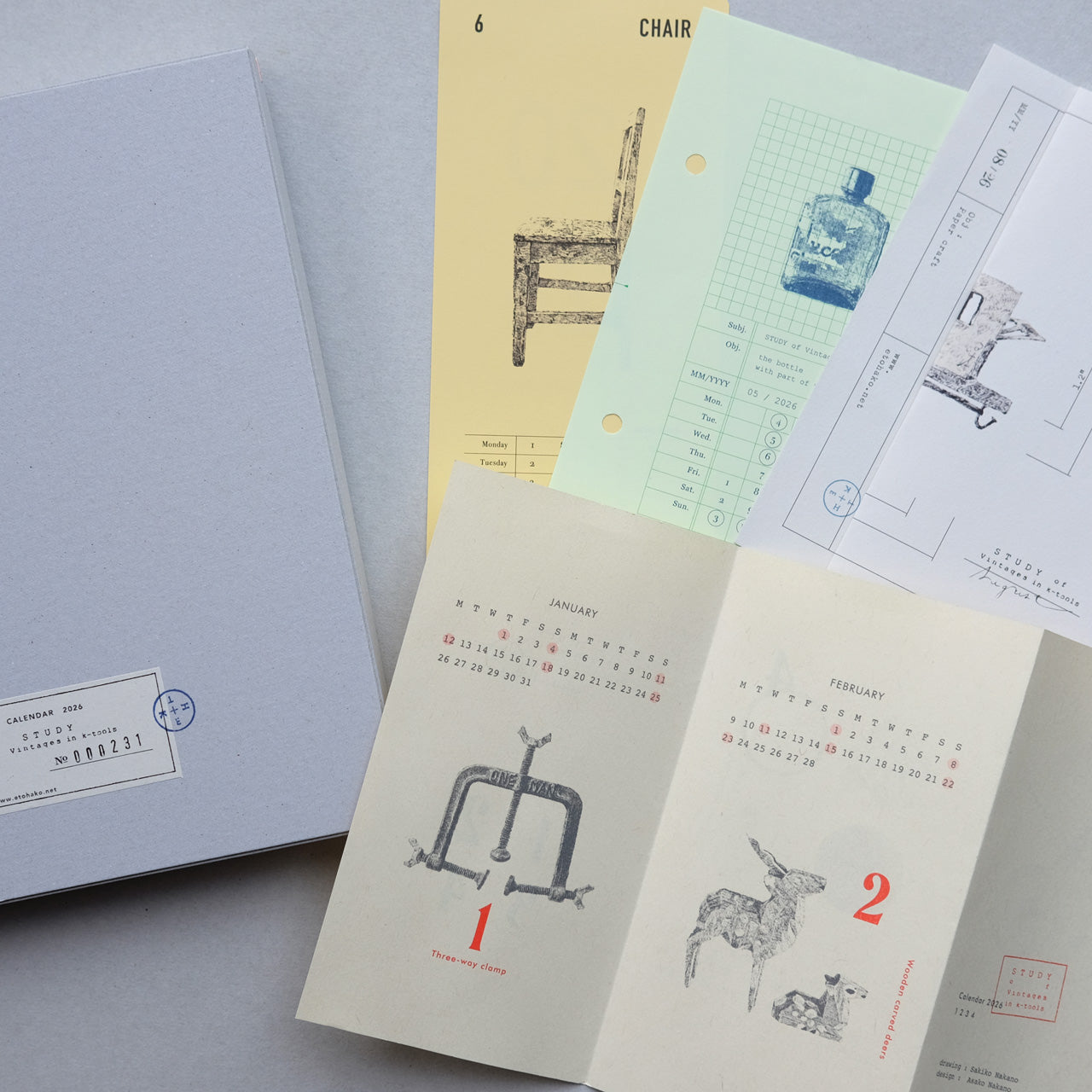 古道具を観察したその記録集をイメージしてデザインされたりと、etohakoさんらしい遊び心たっぷりのカレンダーです。
